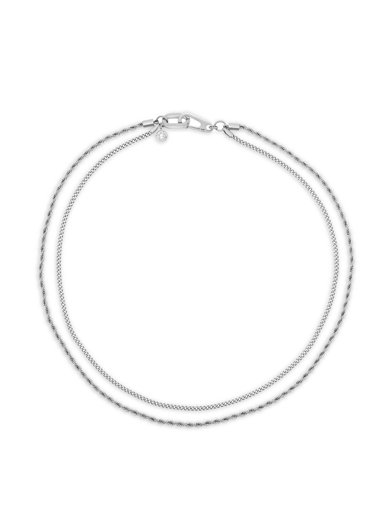 The perfect stack, every time. No effort required. A 2-in-1 micro cuban & mini rope joined together by an industrial-inspired closure. Layered with an 18" cuban & 20" rope. If you're new to jewelry, this is your first piece, don't even think further.